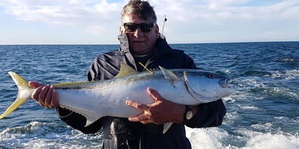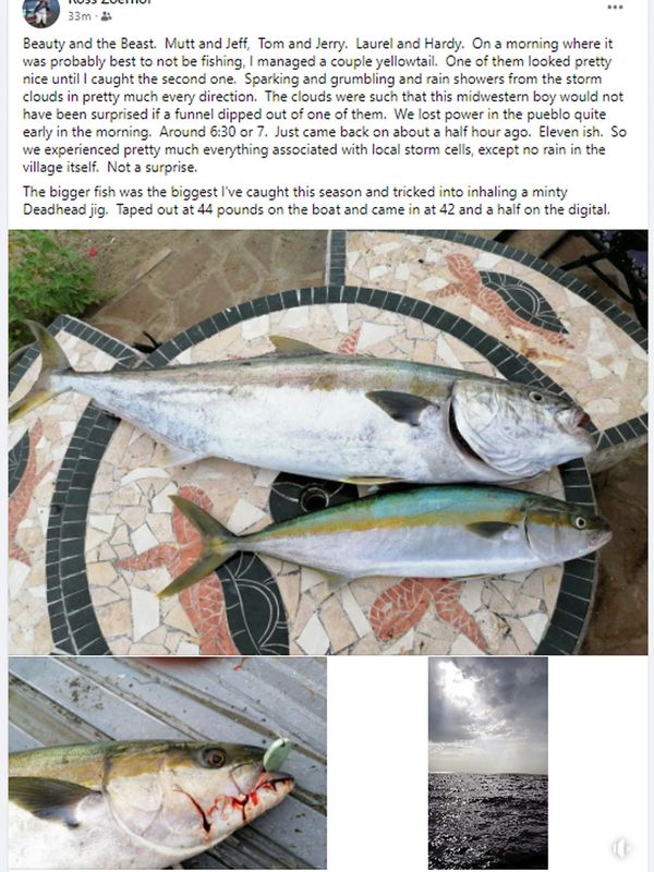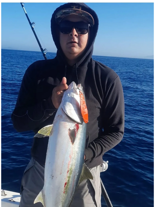 Caught this 28 lb yellowtail on the first drop on the first day. Caught many yellowtail like this on the trip with Deadhead lures.