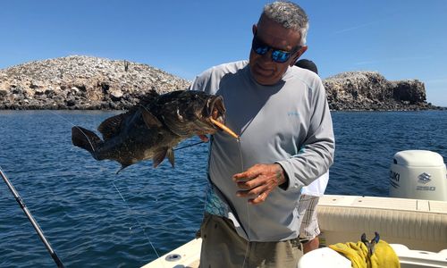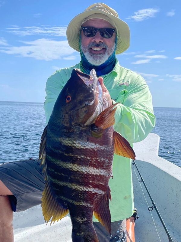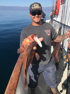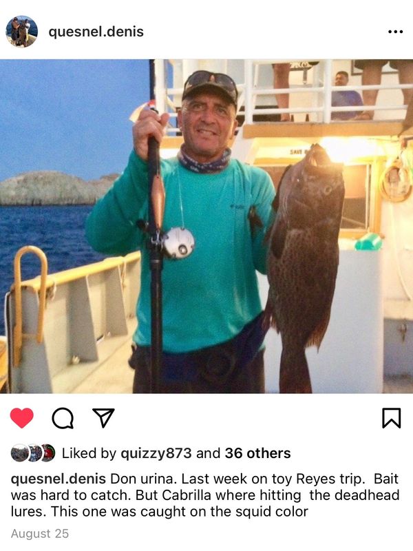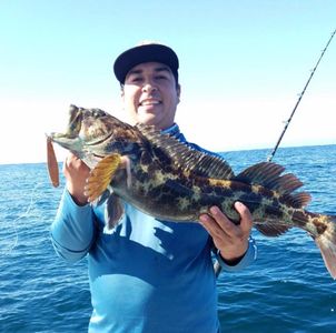 On our recent charter to Mexico we caught many large Cabrilla like this On the squid Deadhead lure.